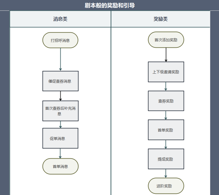奖励类:首次添加奖励-> 上下级邀请奖励-> 查券奖励-> 首单奖励 ->提成奖励 -> 进阶奖励 加强用户信任,诱导用户裂变。