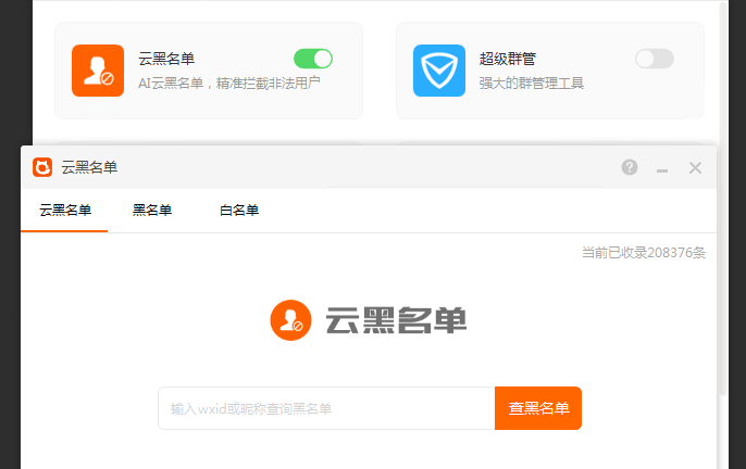收录上万的黑名单,社群捣乱分子,撸羊毛的,等待。同事可以手动添加群内用户到黑名单,一键踢掉黑名单成员!