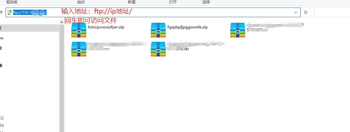 打开我的电脑,在地址栏输入ftp:/ /本机电脑的IP地址,回车访问。如果此时看到文件和文件夹列表,那么FTP服务器就搭建成功了。