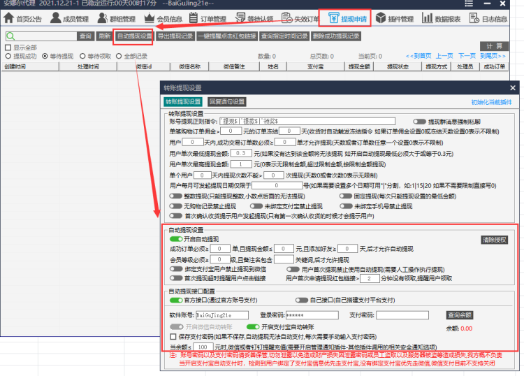 1、目前官方微信自动提现功能屏蔽了的,后期开通后可与支付宝一起使用。