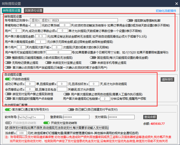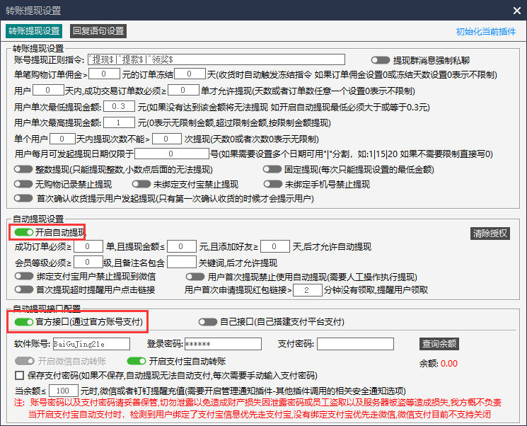 第四步:设置提现的基本限制