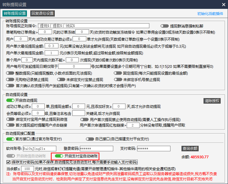 第三步:开启支付宝自动转账