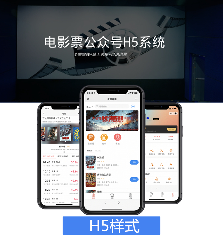 芒果电影票-特价电影票CPS公众号H5系统